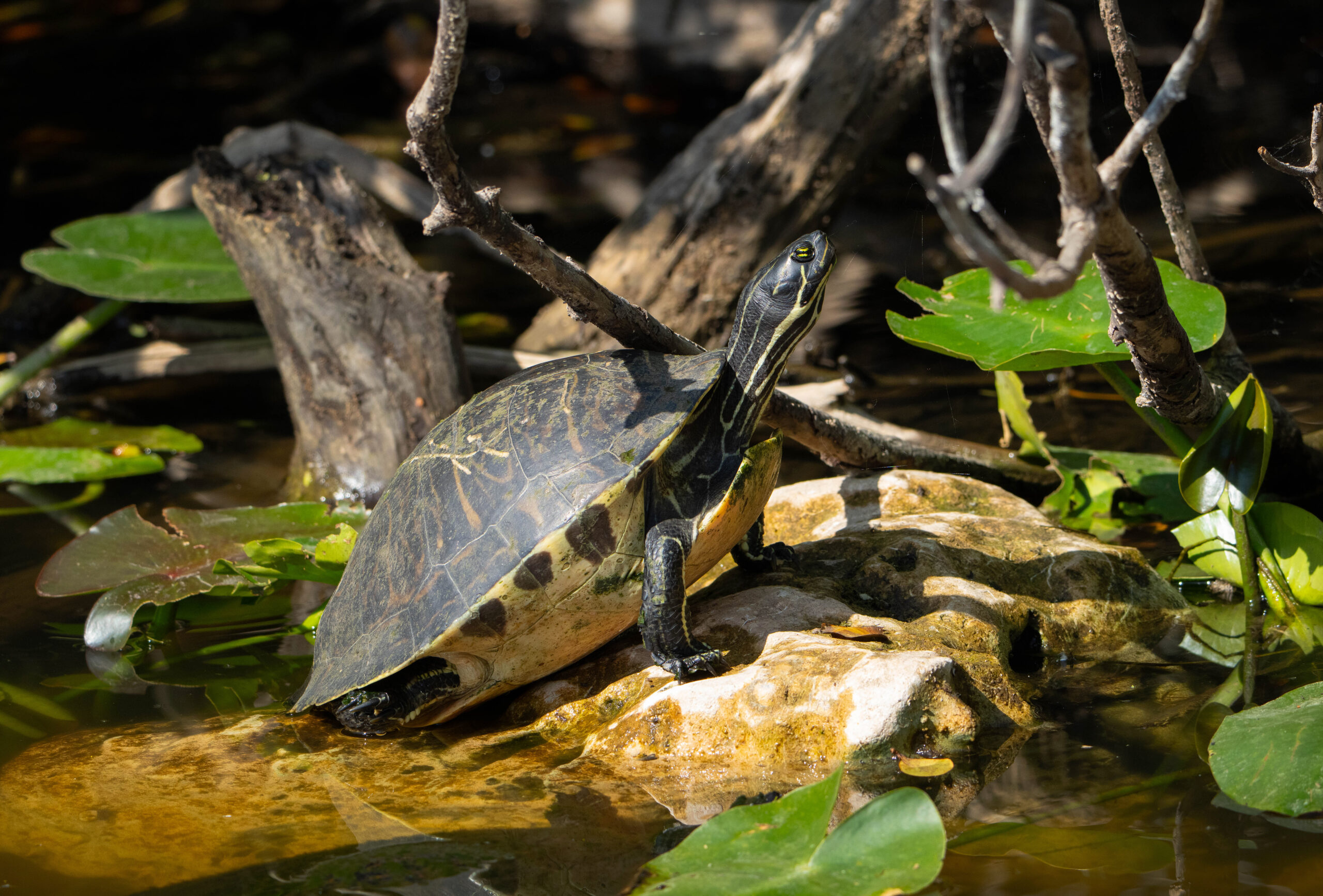 I returned to the east and stopped at Shark Valley where I caught a photo of an illusive white-eyed vireo, whose call I imagined translated to “Take my picture! Too late!”