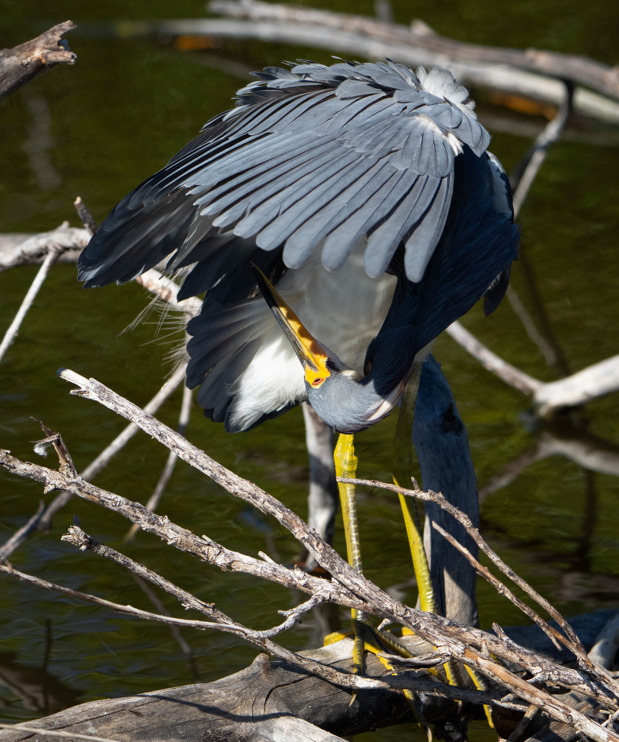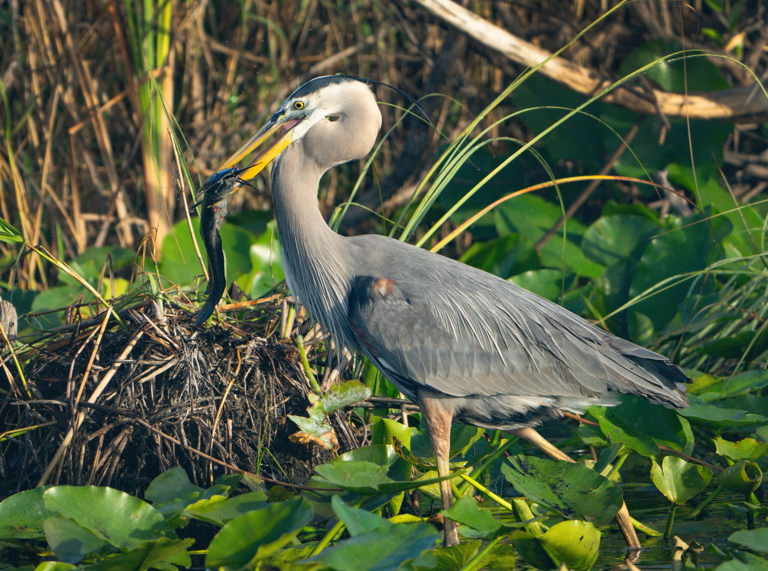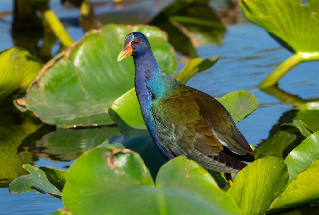 I spent the first couple of days visiting Everglades National Park. I started with a late-afternoon visit to the Anhinga Trail where I saw a few species of birds that were firsts for me, including the eponymous anhinga. The first thing that enchanted me was the purple gallinule. I had to step gingerly around a lounging alligator, probably not giving it a wide-enough berth and hoping it would, if hungry, go after one of the other tourists around me.